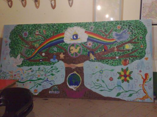 egy hatalmas festményt is, aminek a béke volt a témája.