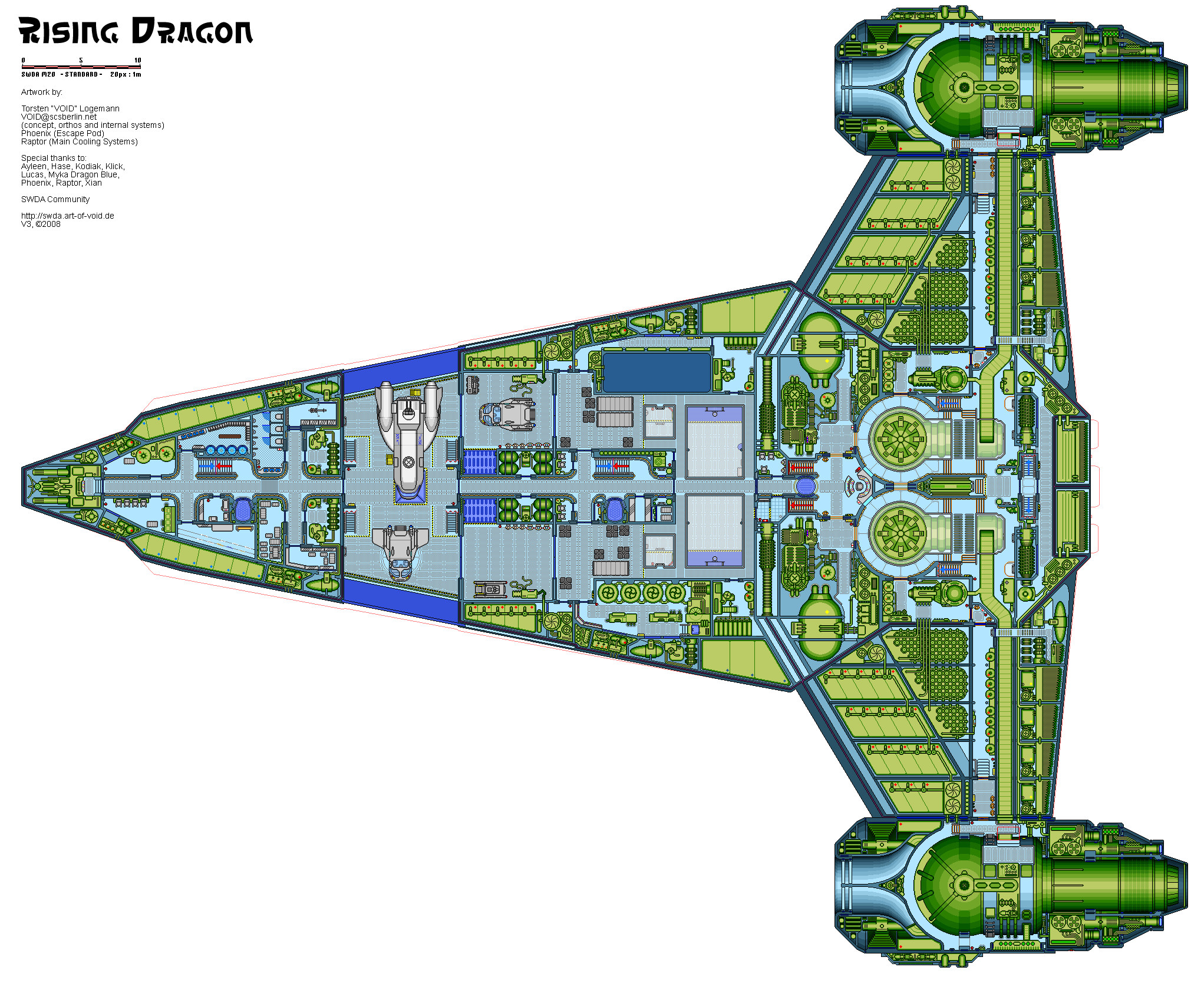 Űr: Három meghajtórendszerrel büszkélkedik a hajó. Két elsődleges Hoersch-Kessel típusú főhajtómű, 12 másodlagos ionhajtómű és 4 torlósugár hajtómű.