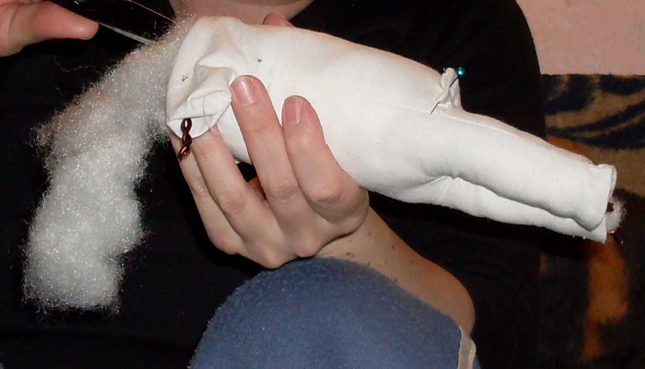 ebbe van rögzítve a behúzás után a kitömött test anyagrésze vagy combrésze.