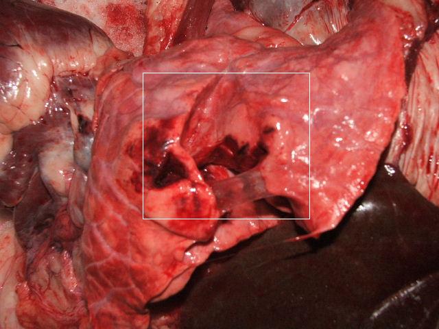 A fotók a tüdőn áthatoló hegy által okozott sérülésről, valamint a bordák között a ki- és bemenetről készültek.