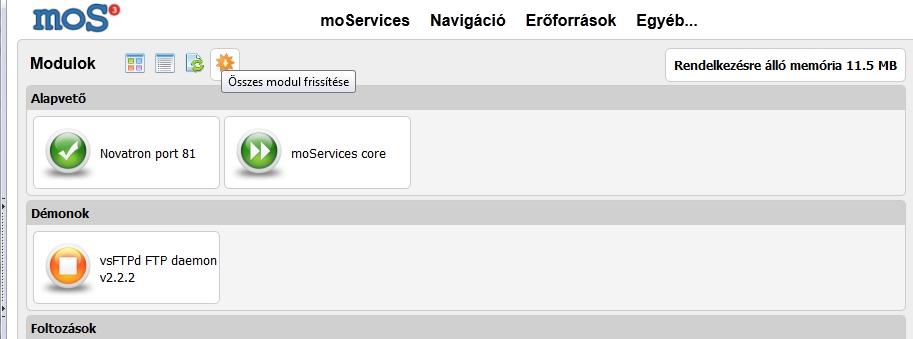 Ha kizöldült akkor kattints a "moServices-Modulok"-ra majd utánna az "Összes modul frissités"-re