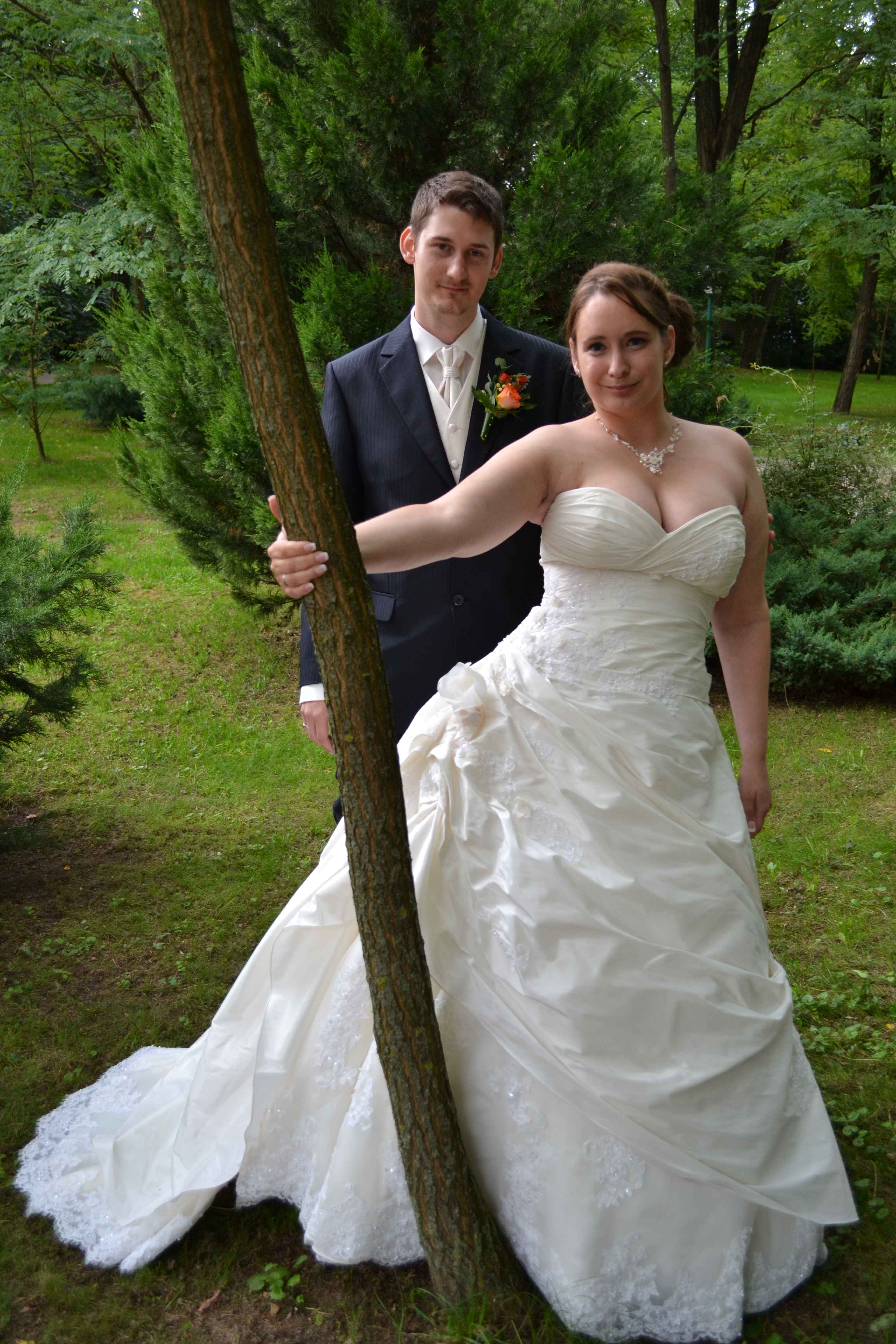 Elérkezett a pillanat, megkezdődött a szertartás. A jegyesek a csodálkozó vendég sereg között végig vonultak, majd megérkeztek az oltárhoz és elkezdődött amire már olyan rég vártunk. A papot aki összeadta őket én egy kissé hobókás fazonnak írnám le, de egy rendkívül szép és megható szertartásban volt részünk. Jómagam is végig pityeregtem. A ceremónia végeztével valami megváltozott és ezt már mindeki tudta. A templom előtt újabb fényképezés következett, itt viszont már mindenki pózólhatott az ifjúpárral. Ezt követően jöttek a jókívánságok mindenkitől. Szandi legnagyobb örömére sütött a nap, ahogy ő fogalmazott "nap sütést rendeltünk". Lezajlottak a jókívánságok. Mindenki a maga módján köszöntötte Szandit és Balázst. Volt aki humorosabban volt aki komolyabban. Néhány vendég távozott a templomi szertartás után. Nos ők bánhatják a dolgot, nem tudják mit hagytak ki! A nésznép összekapta magát, bepattant mindenki a saját járművébe és elindultunk a Geréby kúria felé. Egy hosszú és kimerítő út következett. Jani nagyon frappánsan jellemezte a kúria elhelyezkedését, de ezt most nem idézném szószerint :) Menet közben sajnos eleredt az eső és nagyon nem is akart elállni mindenki, de főleg Szandi és Balázs legnagyobb bánatára. Végre megérkeztünk a kúriába. Képeken már láttam, de élőben más volt, valóban festői szépségű volt. Fredyvel nagyon sokáig csak csodálkoztunk. Itt megismerkedtünk egy rendkívül humoros személlyel, Szituval. Ő volt a ceremónia mester. Nem viccelek ha azt mondom, hogy ő a szavak mestere. Félelmetesen tudta használni a beszélőkéjét. A nésznép kicsit kipihente az utat, evett-ivott. Jött a már-már megszokott fényképeszkedés. Az eső viszont nem akart elmúlni. Így az esküvő menete kicsit megváltozott. Szabadtériből fedett szertartás lett. A polgári esküvő talán meghatóbbra sikeredett, mint a templomi.Ezt is sikeresen végig pityeregtem, viszont Balázs is :) Nem tudta visszafolytani és potyogtak a könnyei :) A zene választás rettentő jó volt. Összeségében megható és gyönyörű volt. Lezajlott szépen nyugodtan a szertartás. Szandi és Balázs immáron házastársak lettek. Örömteli pillanat volt számukra, sugárzott róluk a boldogság. Újabb jókívánságok következtek a házaspár felé. A kívánságokat kis buborékkal kísértük. A nésznép kivonult, mi viszont páran maradtunk. Beszélgetésbe elegyedtünk az ijfúpárral illetve a fényképész hölgy csinált rólunk pár sztár fotót. Majd elvonultunk mi is. Kint maradtunk még beszélgetni egy kicsit, majd elfoglaltuk a kijelölt helyünket. Nagyon jól sikerült a mi asztal összeállításunk, ezt köszönjük! :) Bent Szitu átvette a vezetést. Felkonferálta az estét, verselt. Közben megérkezett az előétel. Az első tál levest Szandi szedte ki, amit Szitu "zsebre rakott" ^^ Sorban érkezett a többi asztalhoz is a leves. Nem vagyok nagy leveses, de ez nagyon jól sikerült. Az előétel után kis szünet következett vártunk a főételt. Fredyvel és Danival karöltve kivonultunk az udvarra beszélgetni, itt csatlakozott hozzánk Szitu. Tátott szájjal hallgattuk a történeteit és közben jókat nevettük. A storyzgatást félbeszakította Szitu és közölte velünk, hogy itt a főétel. Valóban így volt, mire bekeveredtünk a többség már jóízűen falatozott. A főétel isteni volt. Seperc alatt elpusztítottuk az elénk rakott tálcát. A vacsora alatt a ceremónia mester egy jópofa játékot talált ki, ami nagyon hamar háborúba ment át ^^ A játék lényege az volt, hogy a násznép az evőeszközével el kezd finoman a tányérját ütni, akkor a hangzavar és az ütés időtartamára Szandinak és Balázsnak hitvesi csókot kell váltania és szónélkül teljesíteni kell ezt. Akár mit csináltak azt abba kellett hagyniuk. Viszont az éremnek 2 oldala van, Ők is kaptak lehetőséget a visszavágásra. Ha spontán álltak fel és hitvesi csókban forrtak össze akkor a násznép állt fel és szakított meg mindent amit csinált és taps viharban tört ki. Ebből szép lassan egy aprócska háború kerekedett, de rendkívűl vicces volt :) Közben megtörténtek a nászajándékok átadásai. Időrendre már nem pontosan emlékszem, de egy meglepően humoros jelenett zajlott le a csokor eldobásakor. Az asztalunknál ült Botond és a barátnője Betti is. Minden férj nélküli hölgynek ki kellett fáradnia. Betti kicsit félve, de így tett. Dani odafordult Botondhoz majd annyit kérdezett tőle: