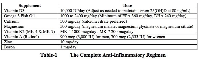 A leírás napi 10.000 IU (International Unit) - ( NE Nemzetközi Egység) adag/nap D3-t ír Cluster mentes időszakban megelőzésre, rohamperiódus alatt viszont a gyorsabb feltöltő fázist javasol ami lehet 20.000 vagy 30.000 vagy 50.000 NE / nap az első héten a vérszérum D3-al való feltöltésére. A leírás alapján a cél a vérszérum 80 ng/mL D3 szintje. Az első hét után a napi adagot csökkentik mivel a test kellőképpen feltöltődött D3-al.