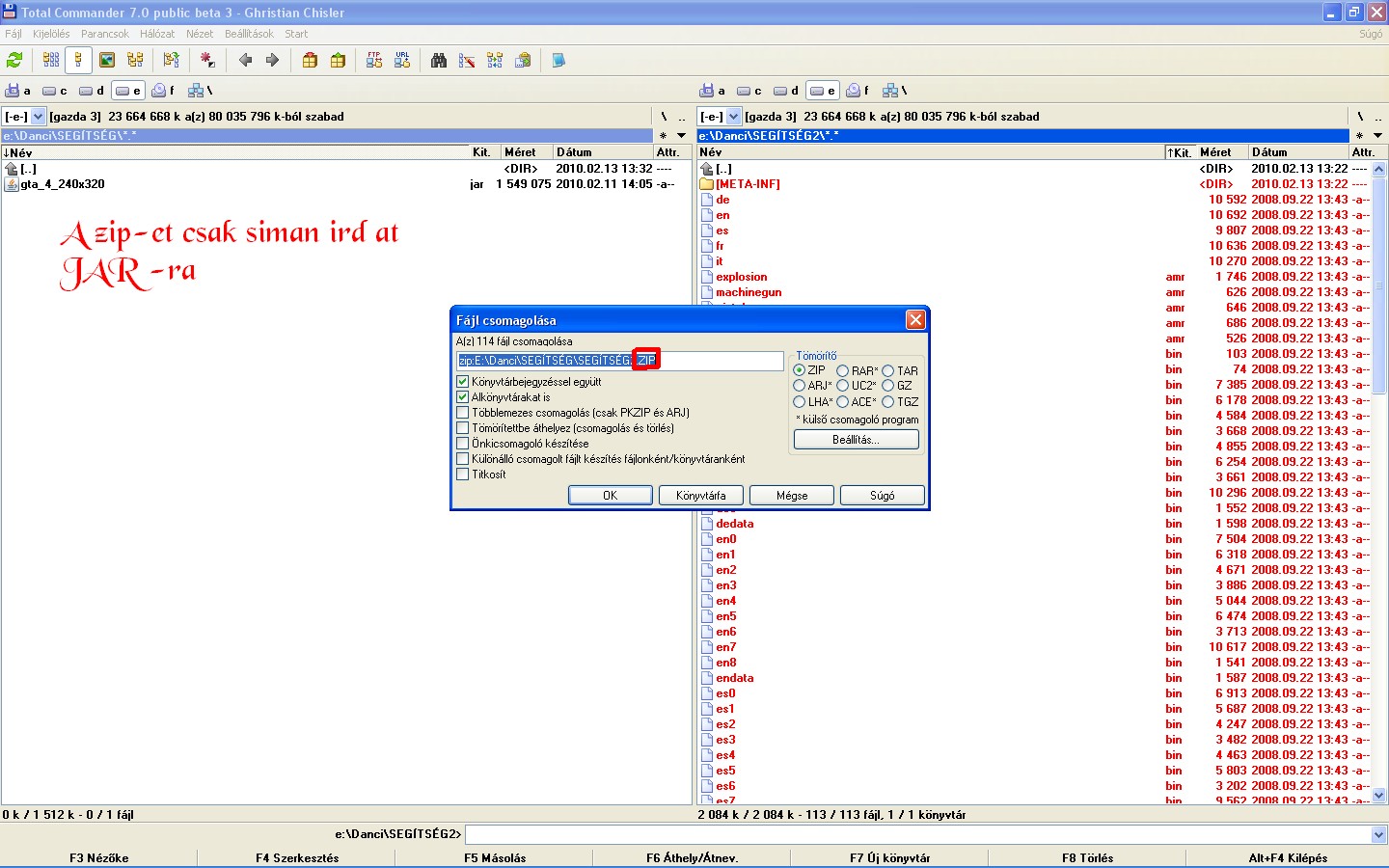A total commanderen belül F4-el megnyitod