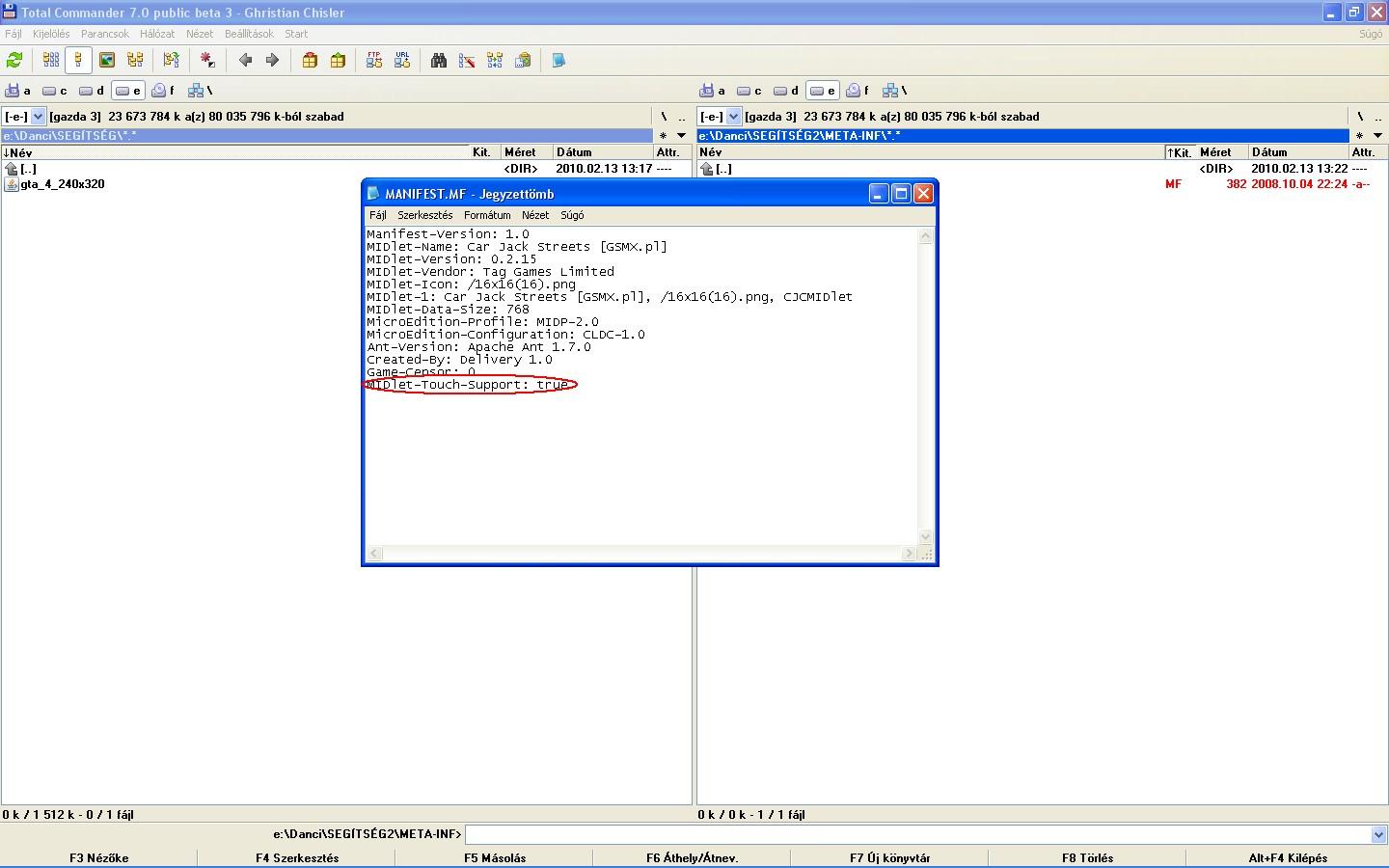 A mappát megkell nyitni, és a benne lévo filét (manifest.MF)