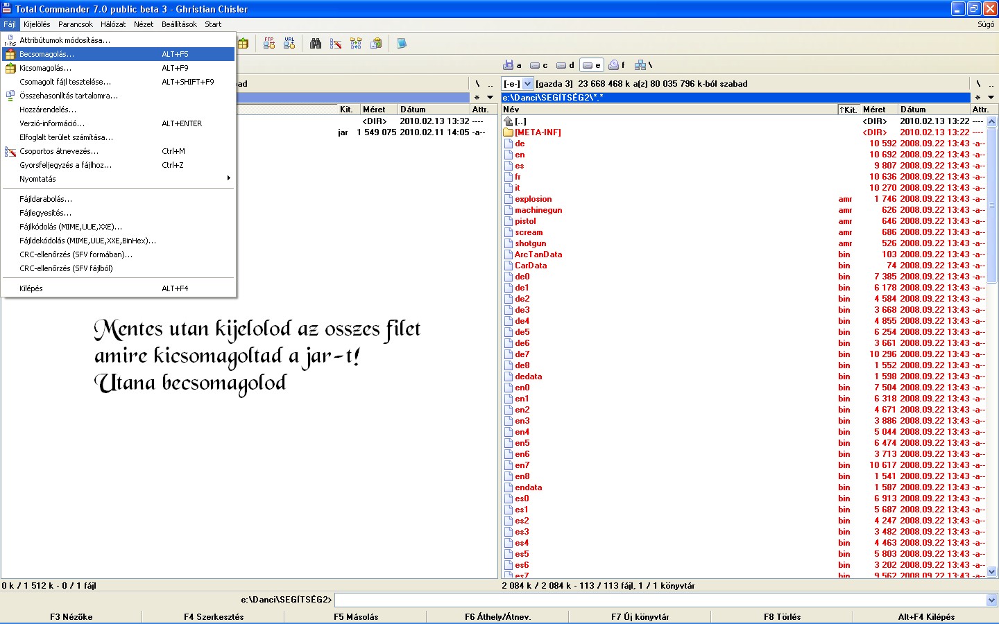 1 mappára ( MANIFEST.MF )csomagolja ki és számos más filére.