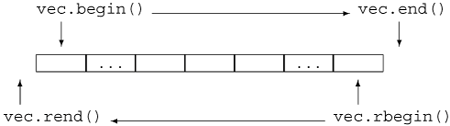 • reverse iterators: These iterators move backward, rather than forward. Each container type defines its own reverse_iterator types, which are retuned by the rbegin and rend functions.