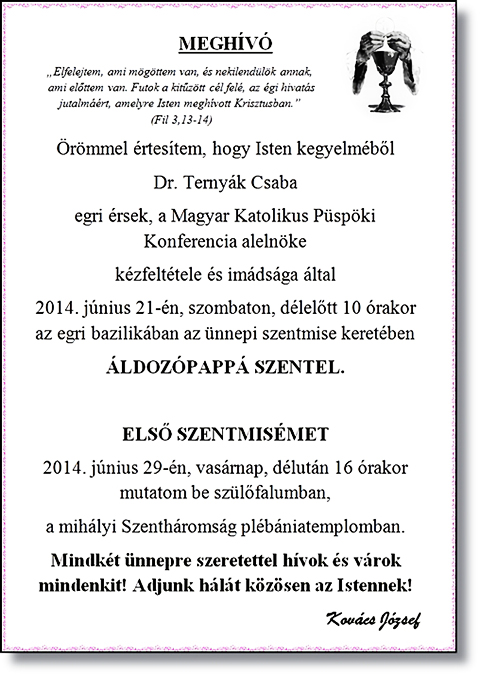 melynek magasztos eseménye a vitnyédi plébános