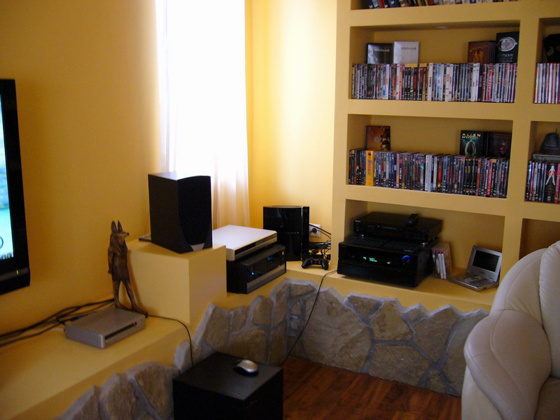 A házimozi felépítéséről, eszközök, hangfalak elhelyezéséről készített képek: