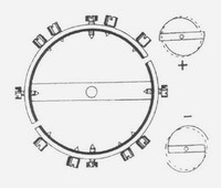 koszorú úgy hajlik be a forgástengely felé,