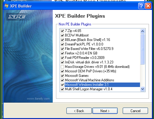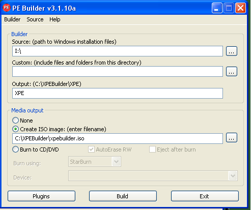 Tulajdonképpen csak ennyi lenne. Az első sorban az "I:" meghajtó jelenti a Windows forrásfájlokat. A harmadik sor, hogy hova mentsen. A "Media output"-tal lehet eldönteni, hogy miként mentsünk. ISO fájlba (ha előtte pl. Virtual PC-n akarjuk kipróbálni) menthetjük, vagy kiírhatjuk CD/DVD- re! A "Plugins"-ra kattintva engedélyezhetjük/letilthatjuk az egyes elemeket, hogy miket rakjon bele. Személy szerint én békén hagynám, mert minden, ami tényleg kell az benne lesz. A Nero-val, az AdAware-rel és a MsAfee-vel lehet gondunk. Utóbbi kettőt még nem tudtam megoldani, de a Nero-t igen. Ha van a gépünkre telepítve Nero 6.x, akkor nyissuk meg a "C:/Program files/Ahead/Nero" mappát, majd itt az összes fájlt jelöljük ki, másoljuk át ide: "C:/XPEBuilder/plugin/200_programs_support/nero burning rom/files". És rakjuk még ide a program regisztrációs kódját is! (Jegyzettömbbel egy txt fájl-t, majd írjuk ide) Ha ez megvan, akkor a pluginoknál katt az "Enable" gombra a Nero burning rom-nál. Close, majd pedig mehet az írás (persze előtte helyezzünk egy üres, íratlan CD/DVD lemezt a gépbe, majd pedig várjunk (a telepítőlemezt ne vegyük ki!). Ha viszont csak egy író-olvasónk van, akkor előbb mentsünk le ISO formátumú fájlba, majd pedig az ISO fájlt írjuk ki UltraISO-val. Ha megvan a CD/DVD, akkor már örülhetünk. Kipróbálhatjuk Virtual PC 2007-en, vagy akár saját gépünkön is! (de akkor a BIOS-ban át kell állítanunk elsődleges booteszköznek a CD-olvasót. Néhány kép, hogy hogyan néz ki: