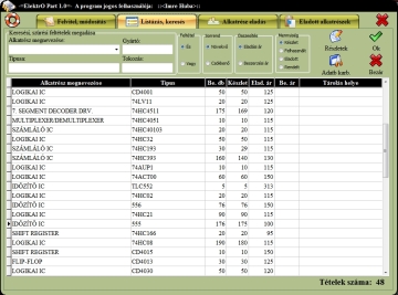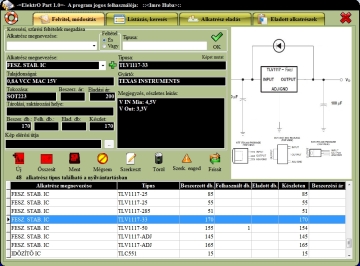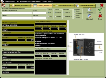 Egy alkatrészről rengeteg információt tudunk eltárolni megnevezést, típust, gyártót, alapkapcsolást, komplett leírást, az alkatrész tárolási, raktározási helyét...