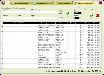 A felvitt alkatrészeinkről tudunk különféle listákat lekérdezni, megnézni mennyi darabot adtunk el,