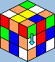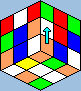 mehetünk tovább a többi éllel. ![]() Ha a keresett él az alsó sorban van (utolsó 2 ábra), az egyik felső, kirakott él elmozdulhat; ebben az esetben az alsó sort fordítsuk el valamerre (ha kell, többször), míg el nem végezhetjük ezt a mozgást (vagyis egy üres hely alá kell forgatni az adott élt). A középső sorból pedig egy mozdulattal a helyére vihetjük az élt (2), de az is lehet, hogy a középső részt még forgatni kell (1). Ha forgatunk, ne felejtsük a közepeket visszaforgatni az élek alá. Ha valaki nagyon nem bírja elképzelni, itt egy példa: => kocka