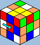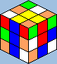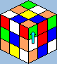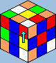 ![]() lőször is kezdő közép legyen felül. Ennél a résznél figyelni kell arra, hogy melyik helyre rakjuk az éleket. Ha például a sárgát rakjuk ki, és szomszédos vele a kék és a piros (alatta vannak), akkor nem lehet az első helyre a piros-sárgát, a másodikra a kék-sárgát rakni. Hogy tudjuk, hogy jó helyen vannak az élek, úgy állapíthatjuk meg, hogy a kirakandó színnel szomszédos közepeket a kirakott élek alá fordítjuk: