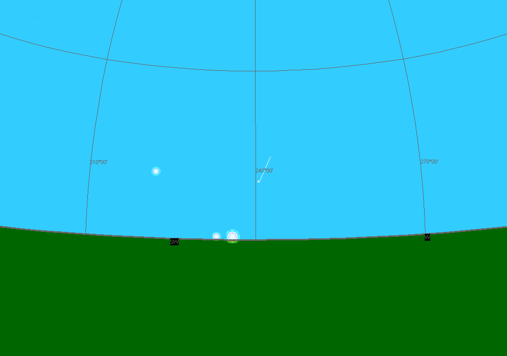 Rövid animáció az észlelésről (Cartes du Ciel). A mozgóképen az üstökös mellett az éppen lenyugvó Nap és Merkúr látszik a Vénusszal, később felbukkan az Altair és a Formalhaut csillag.