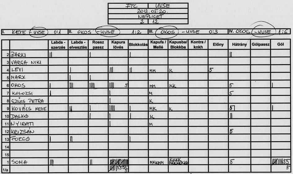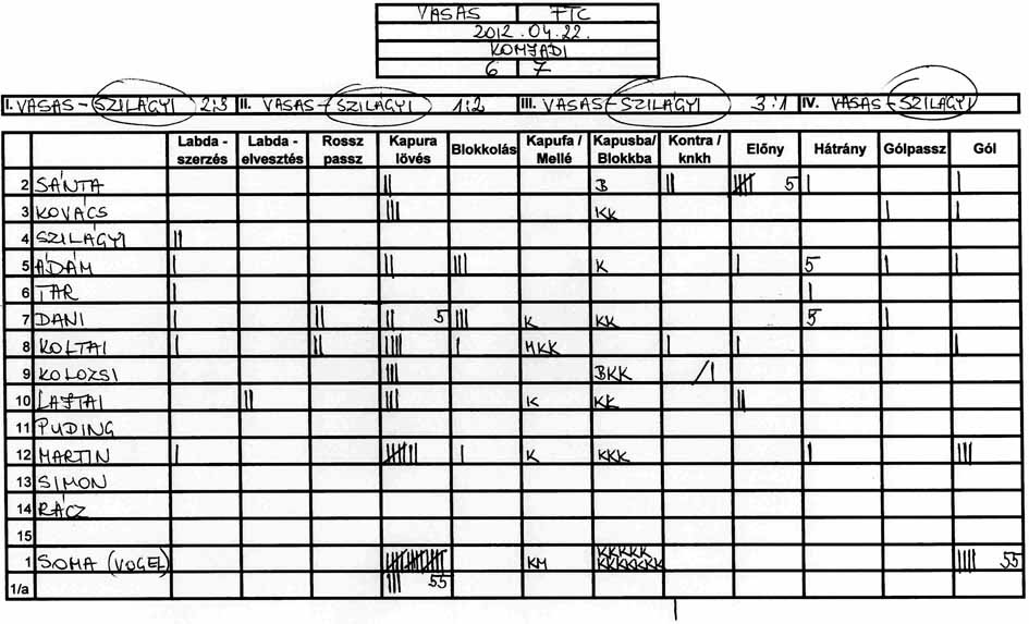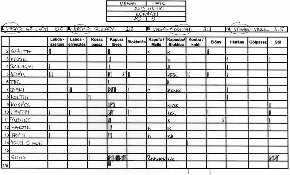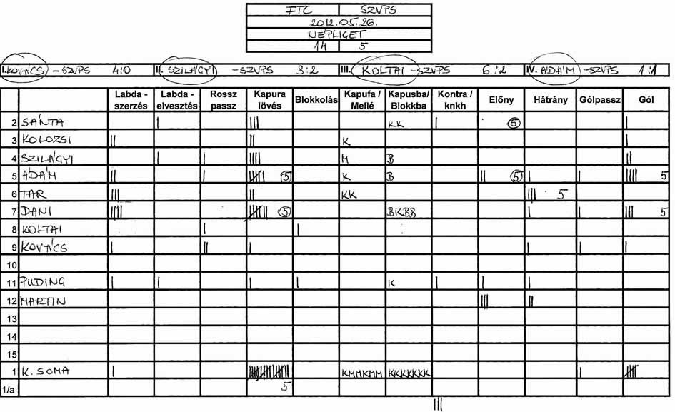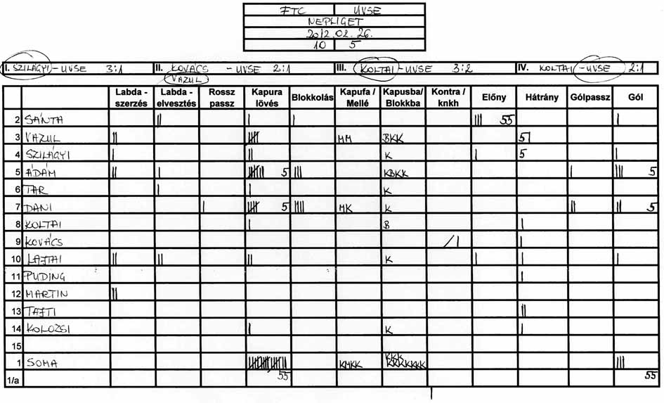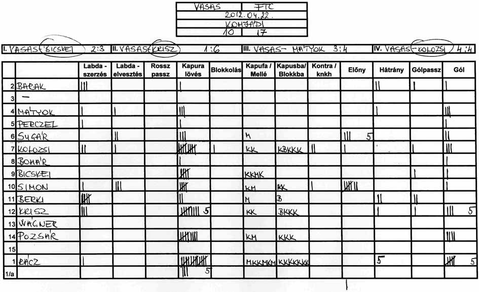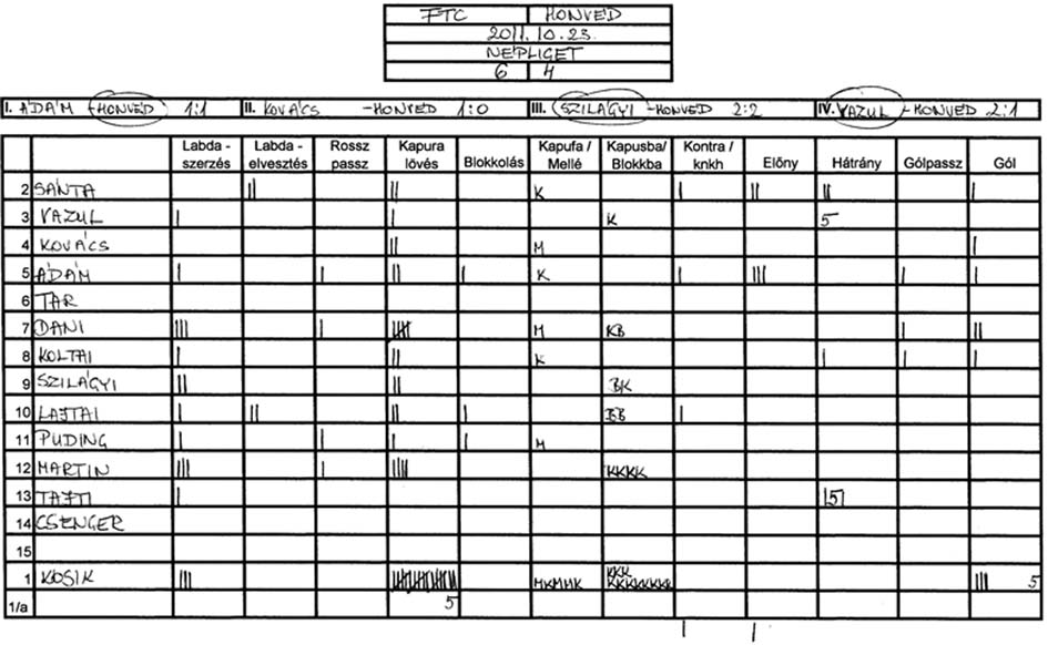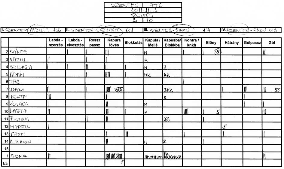 Továbbra is gondot okoz a csapat több tagjának, hogy a tőle 3-4 méterre levő társához passzolja a labdát és hogy meg tudjuk közeliteni az ellenfél kapuját.