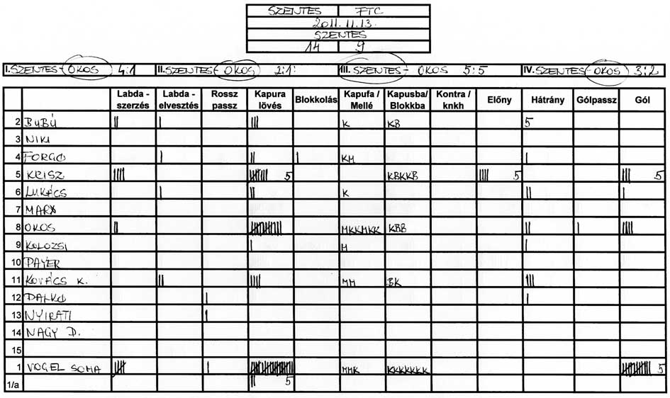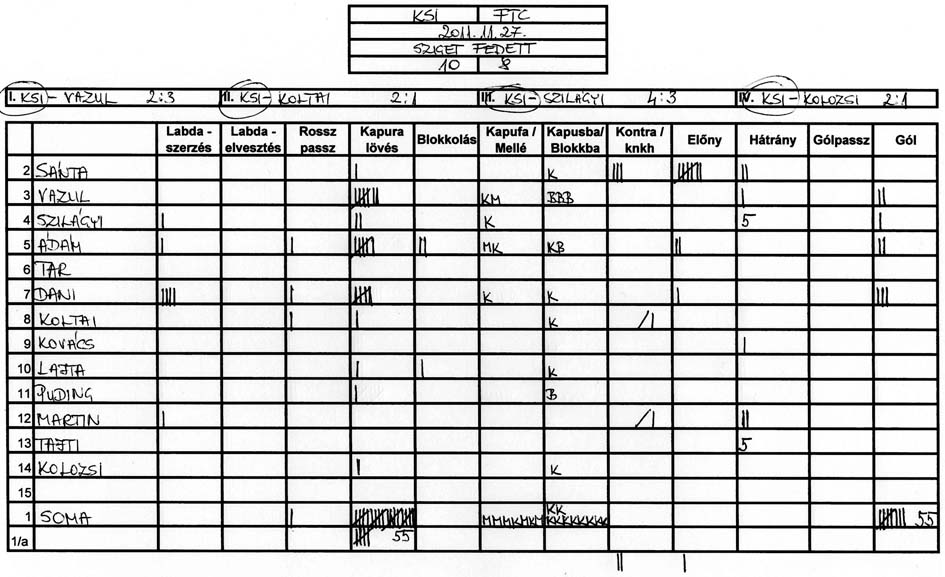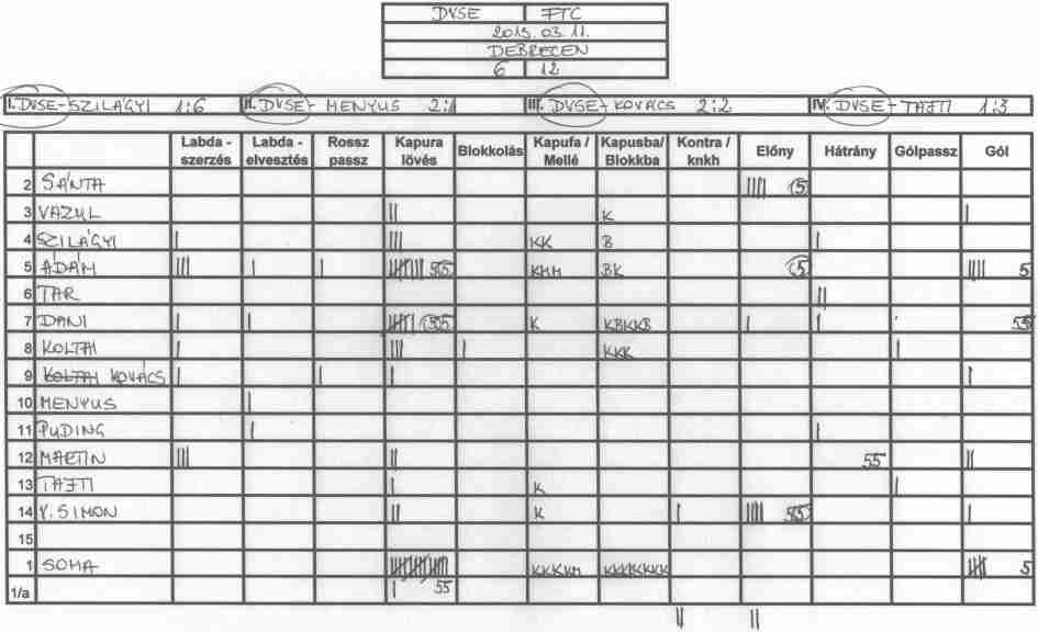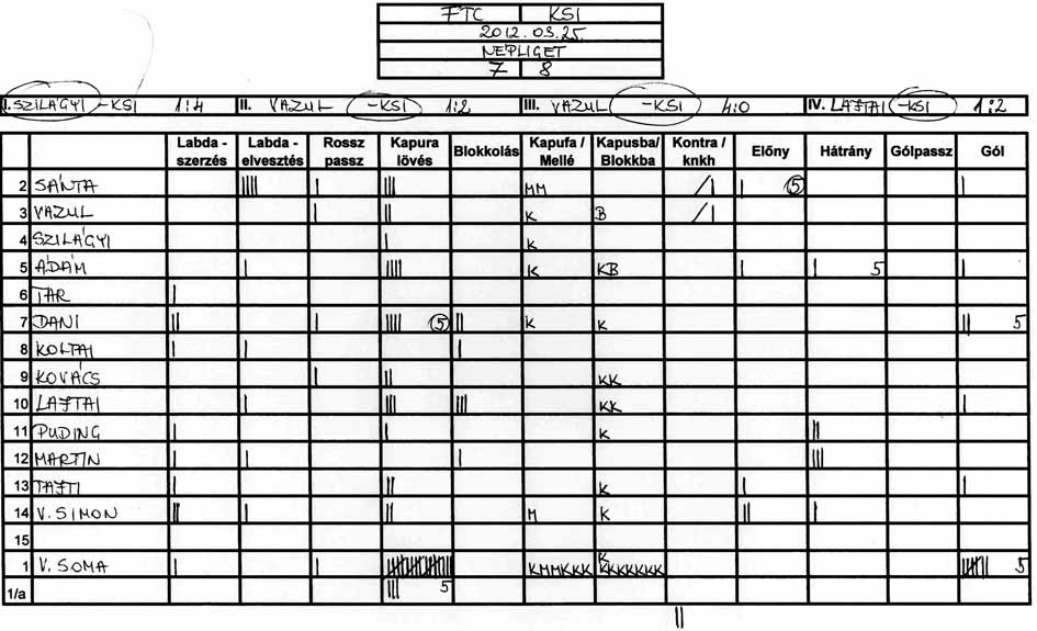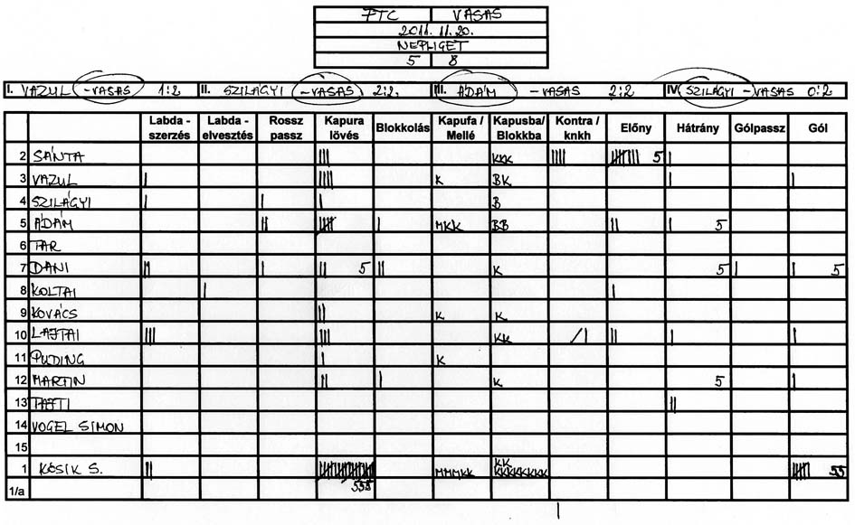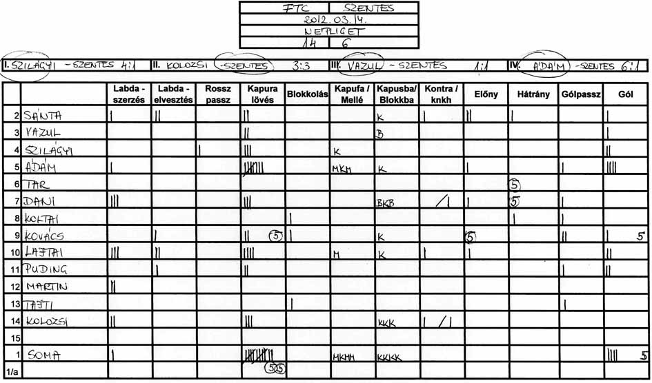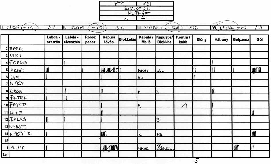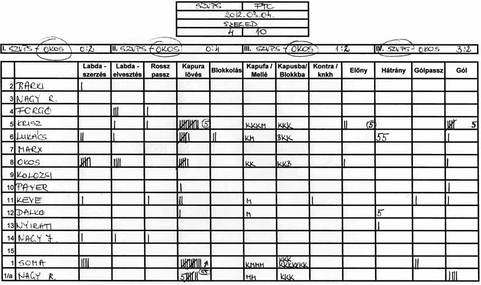 Továbbra is gondot okoz a csapat több tagjának, hogy a tőle 3-4 méterre levő társához passzolja a labdát és hogy meg tudjuk közeliteni az ellenfél kapuját.