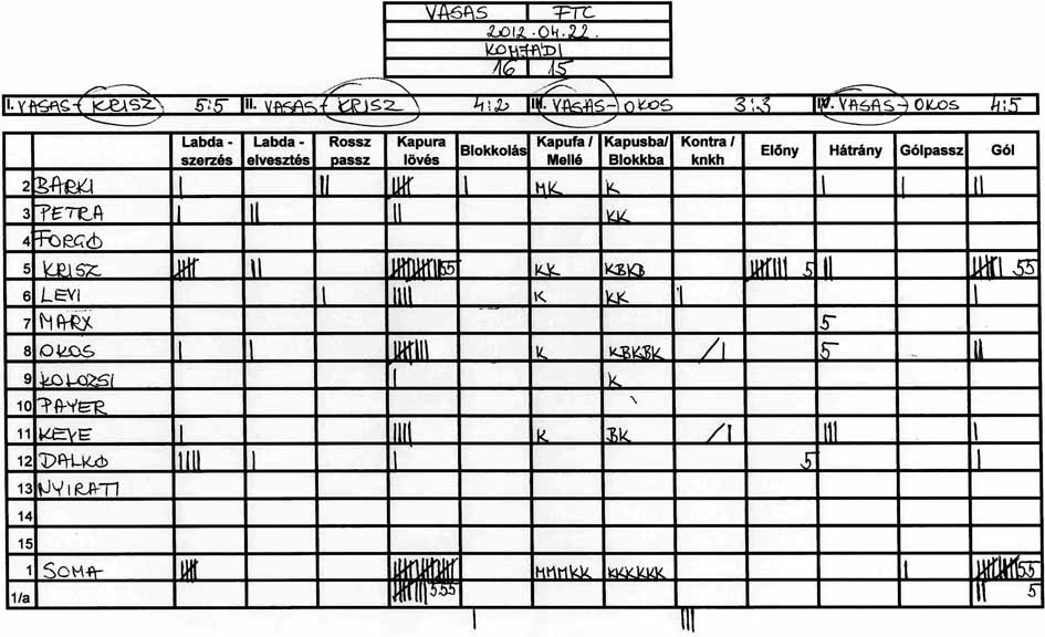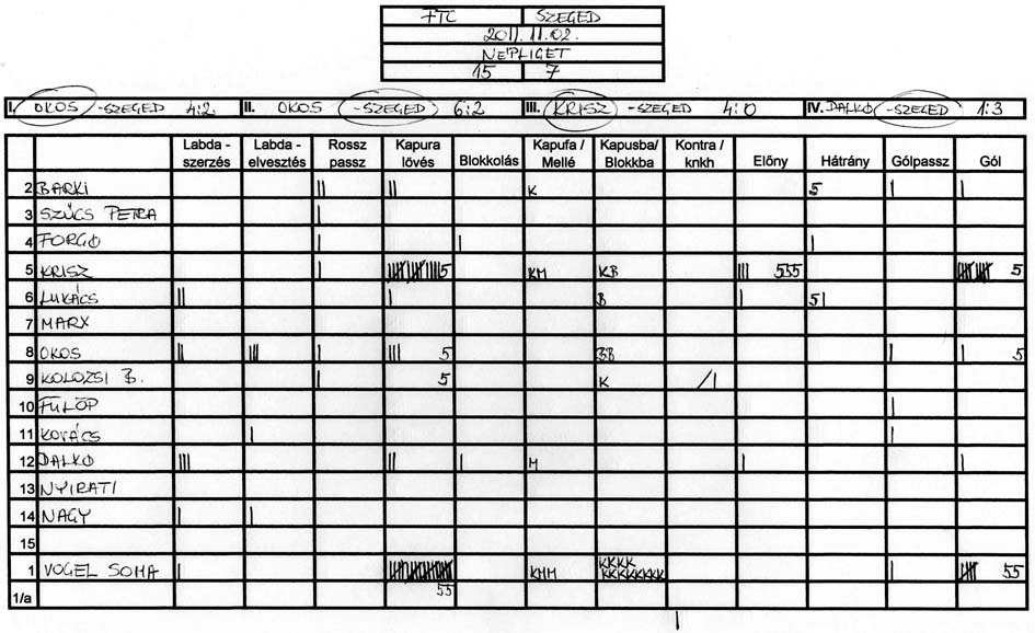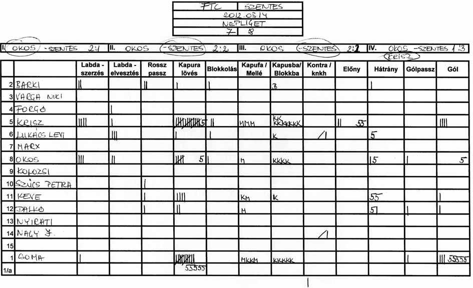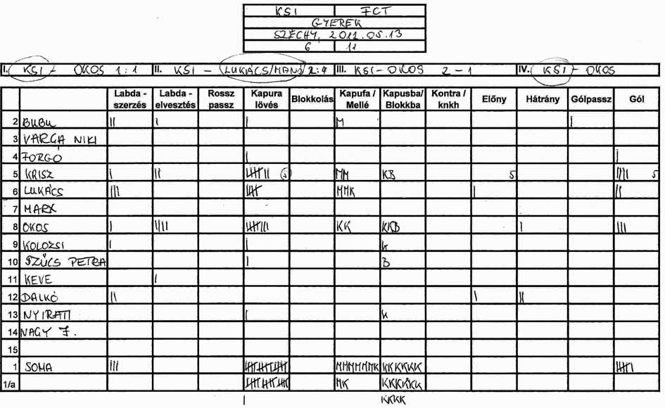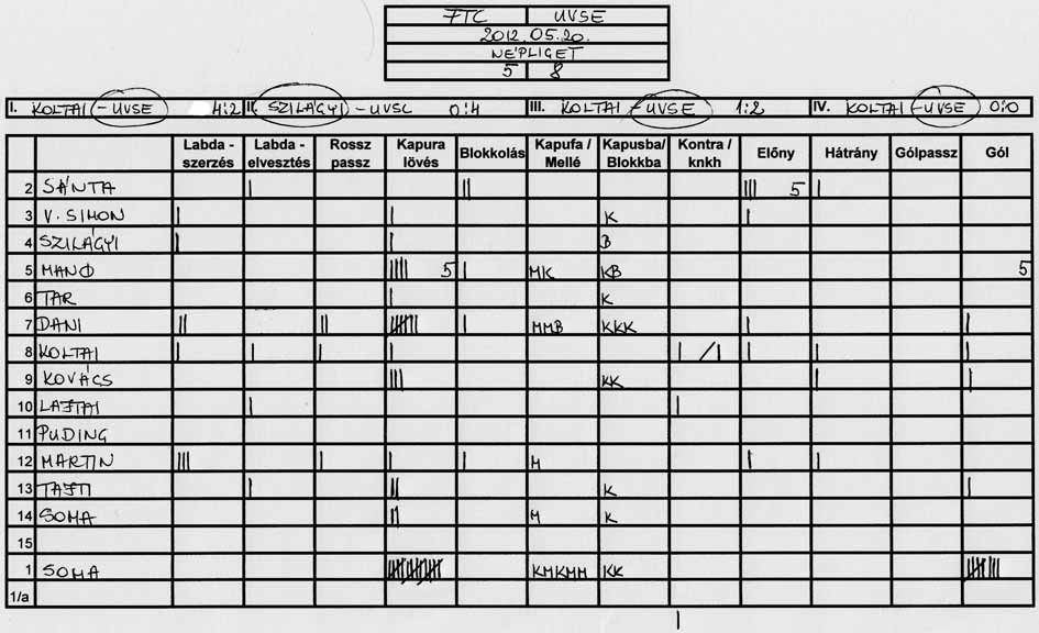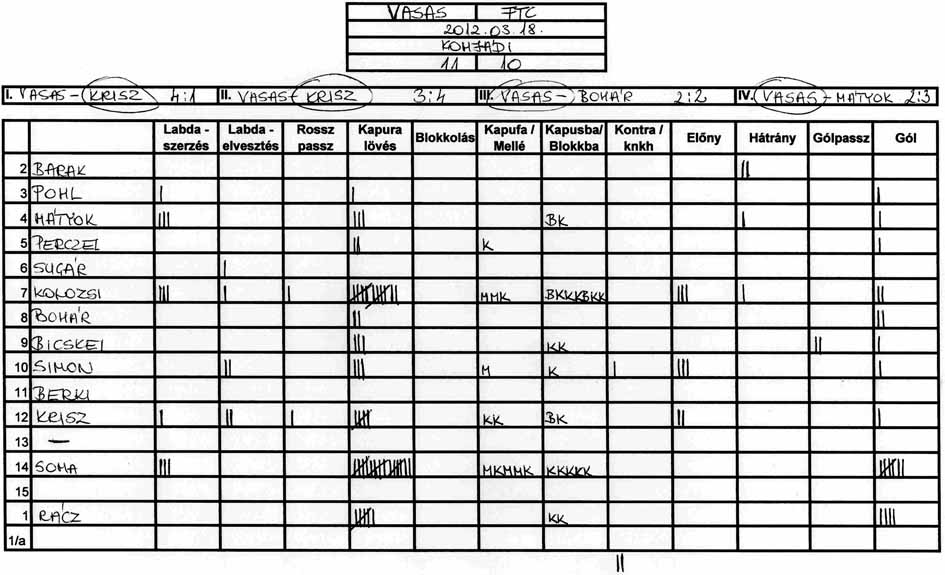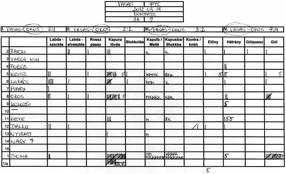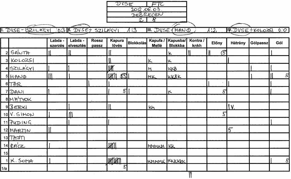 Továbbra is gondot okoz a csapat több tagjának, hogy a tőle 3-4 méterre levő társához passzolja a labdát és hogy meg tudjuk közeliteni az ellenfél kapuját.