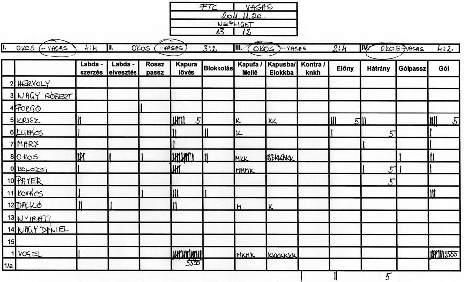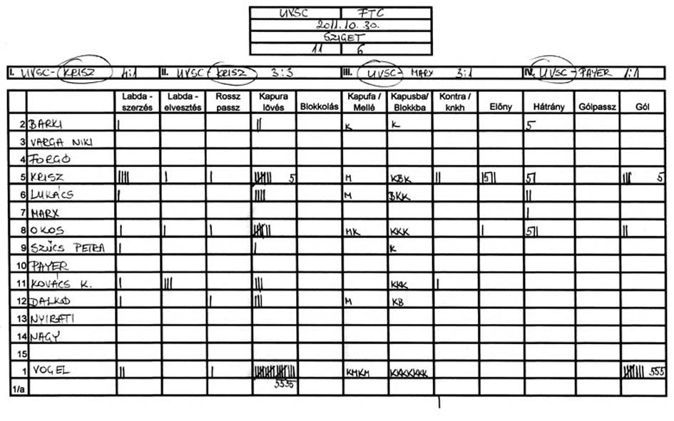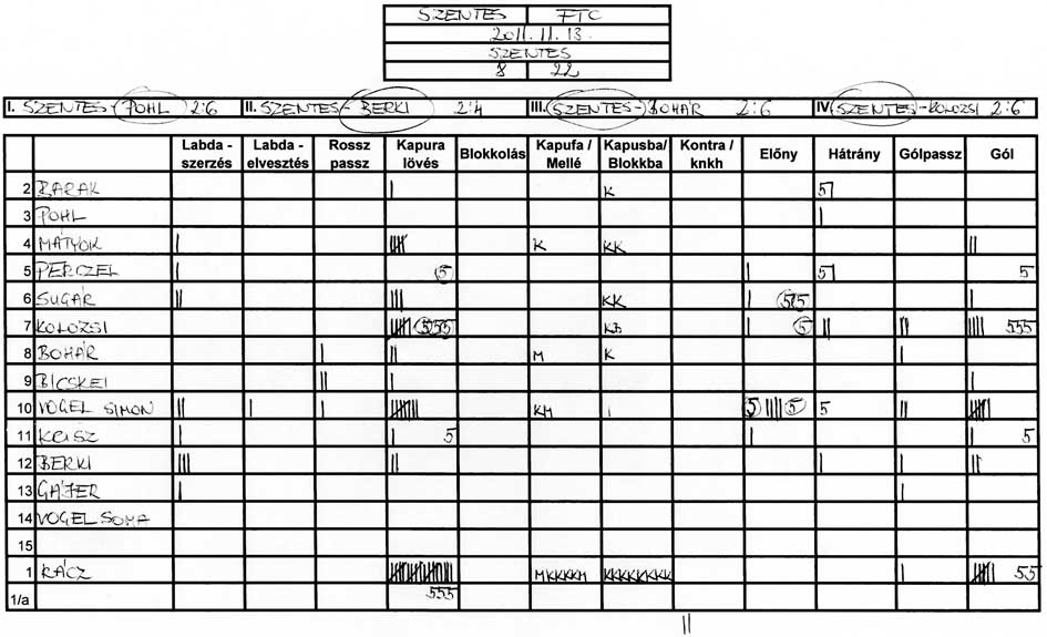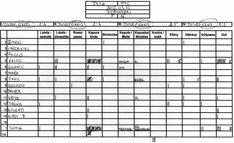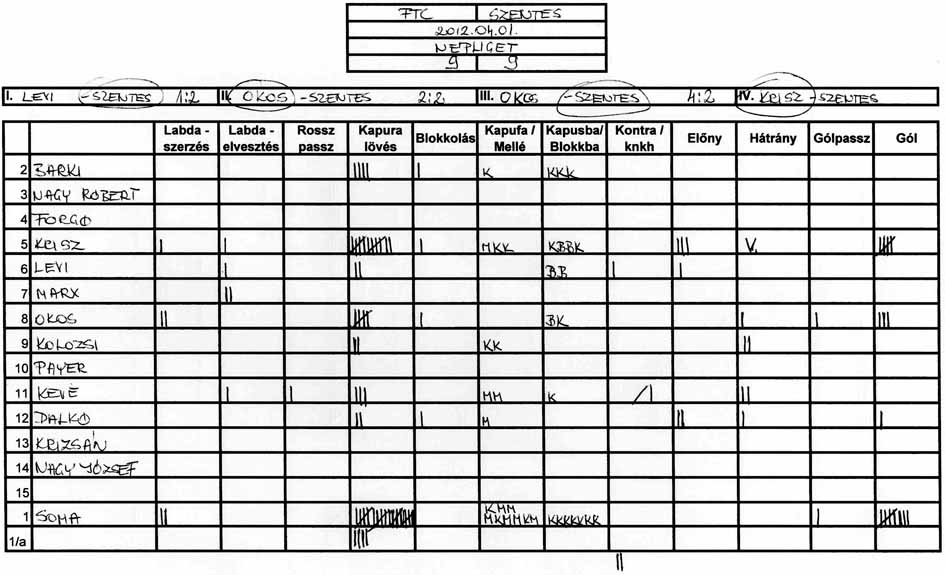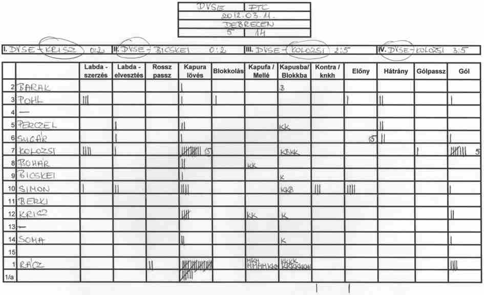 Gyakorlatilag mindkét ellenfelünk ugyanazt a rizikós játékot játszotta ellenünk, azaz feláldozva egy védőt mindig leduplázták egyik játékosunkat. Ennek következtében szinte mindvégig egyfajta emberelőnyben játszott a csapatunk, de hiában volt mindig ott az állandó lövőhelyzet, képtelenek voltunk tisztességes lövéseket produkálni. Érthetetlen, hogy az edzéseken jól lövő játékosok hogyan képesek ilyen (nem is akarom minősíteni) lövésekre a mérkőzéseken.