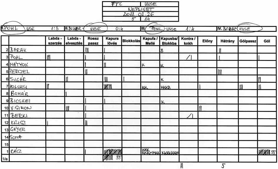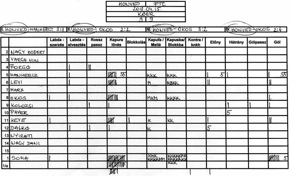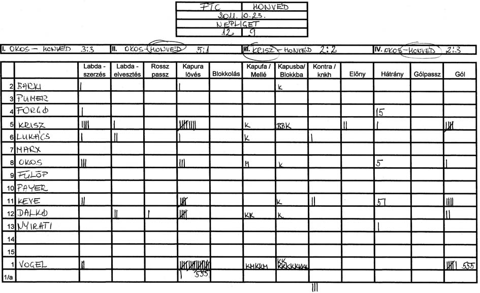 Pár adat. A Honvéd ellen 27 lövésből 10 mellé, az UVSE ellen 39 lövésből 10 mellé.