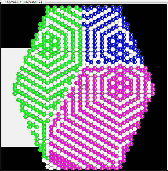 | Generation#19: The inhabitants have spread all over the playground. | Left half of the main form |