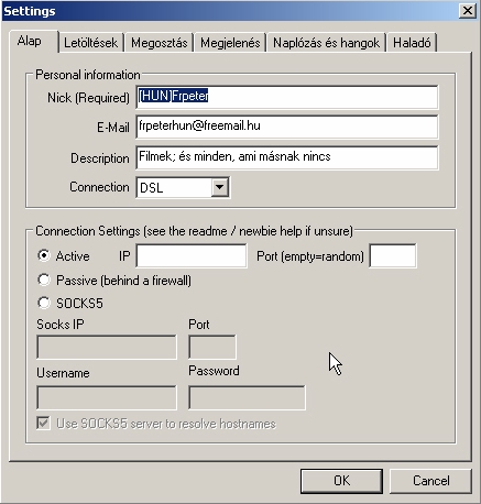 Connection settings-t hagyd active-on, hacsak nincs tűzfalad. Vigyázz,