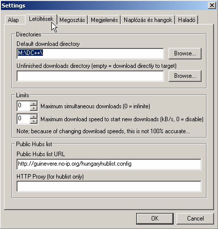 beállítani, hogy a letöltendő file-ok hova kerüljenek. A Limits-nél az