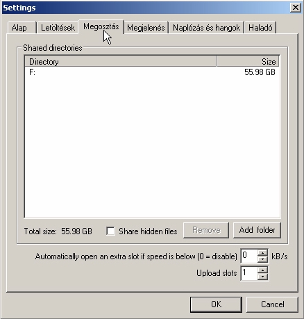 megosztani kívánt mappákat. Upload slots az általad megengdett