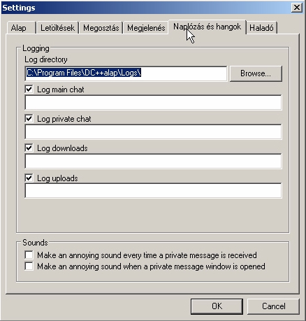 Ha azt akarod, hogy DC-d elmentse a chateket, azt itt tudod beállítani.