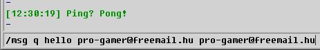 2. Írd be a mIRC-edben: /msg Q hello emailcím emailcím Pl.: /msg Q hello fifaplayer12@freemail.hu fifaplayer12@freemail.hu