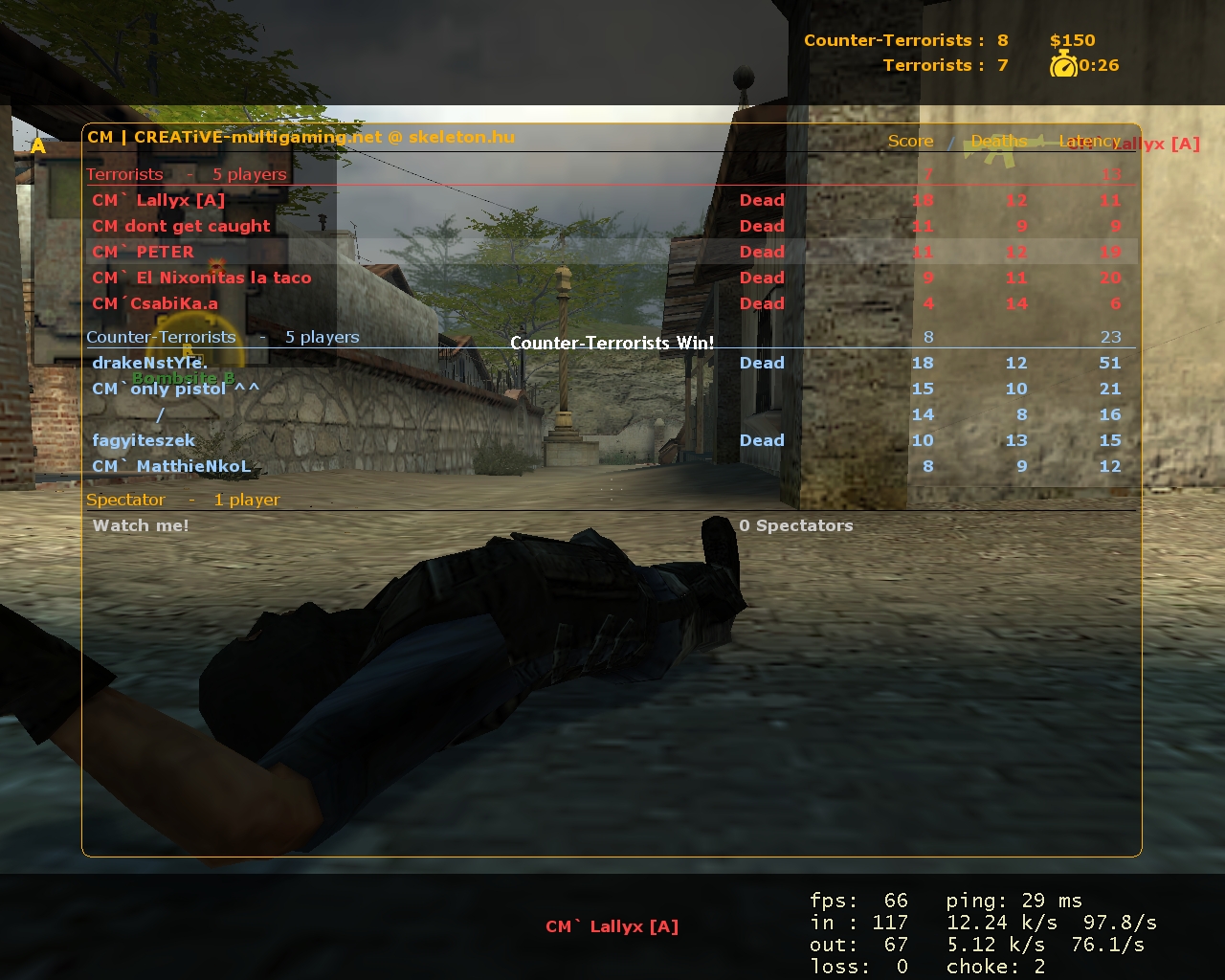 Mapok: de_dust2, de_inferno