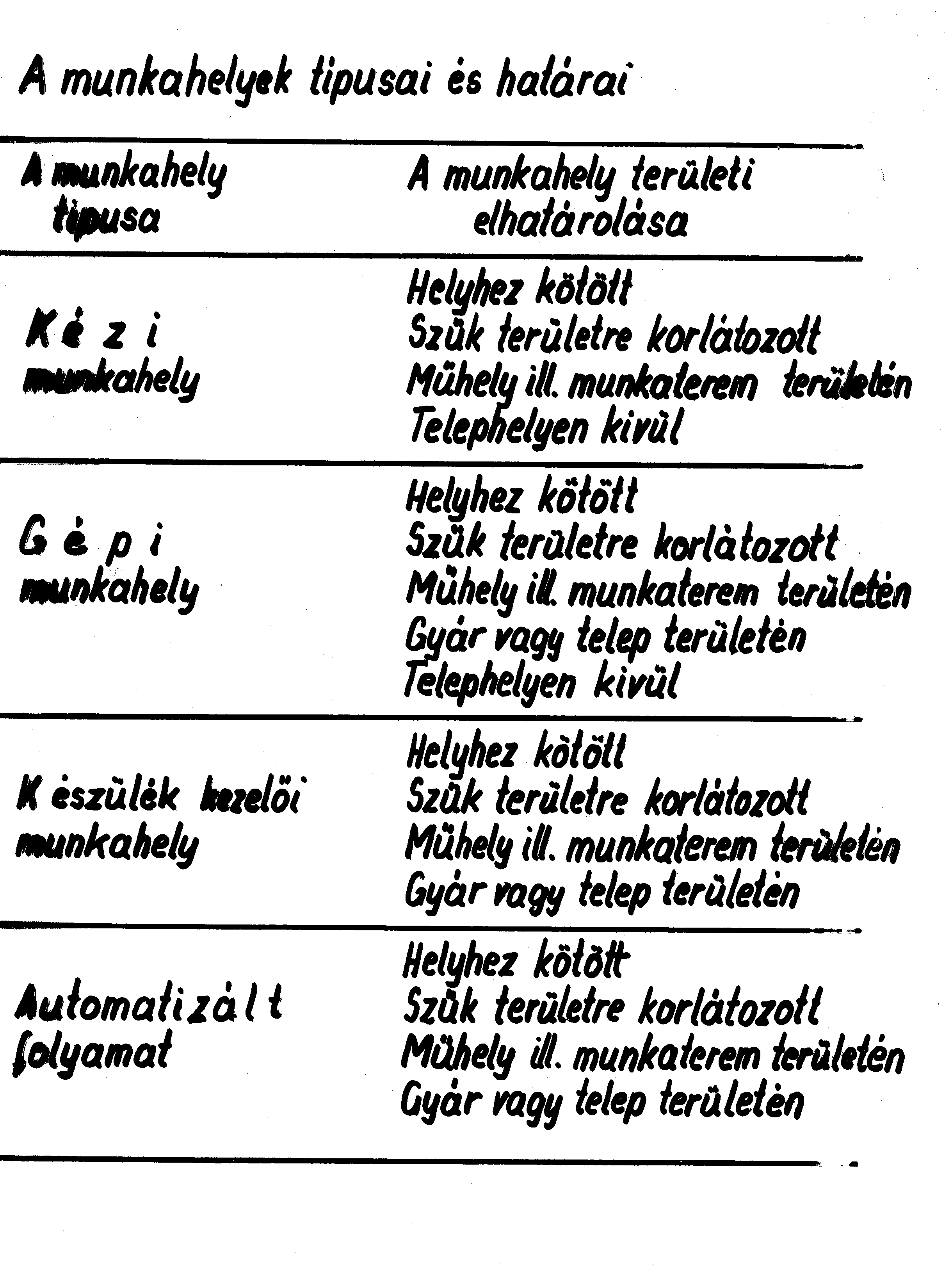 A munkahelyek típusai és határai