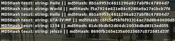 A képen láthatjuk, a string szó után az eredeti általunk megadott szót, majdpedig az md5hash által ugyan ez csak kódoltan.Bejelentkezésnél például, mi lekérdezzük a tárolt jelszót ami a felhasználóhoz tartozik és nem visszafejteni akarjuk, hanem összehasonlítani az ő által beírt jelszót md5hash-re fordítva.Példa:string jelszo = beolvasValahonnan(Azzeroth jelszavát); //ő most befogja olvasni az én jelszavamat kódoltan.
