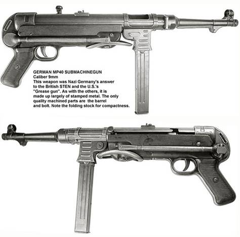 A híres MP40 1940-ben került bevetésre a nyugati fronton. Kezdetben szakaszonként 3 darab jutott belőle, később viszont széles körben elterjedt. A világháború végéig 908, 317 darabot gyártottak belőle.