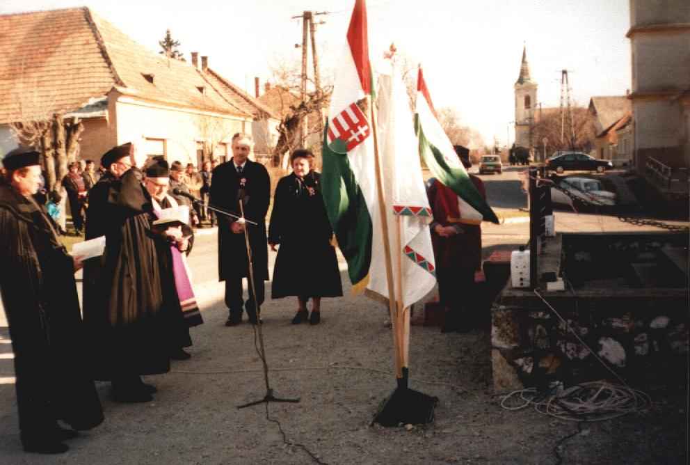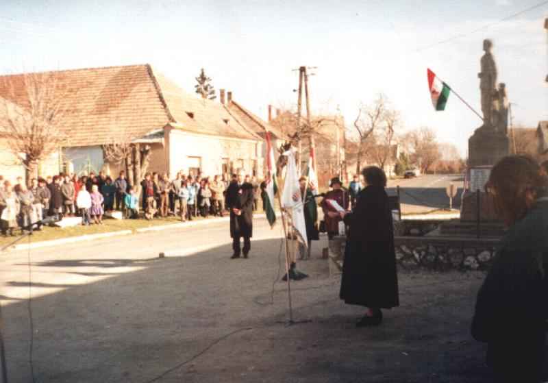 Nemzetőrség szervezése Nemzetőrség a közrend fenntartásának, védelmének törvény által gondoskodott szervezete volt. 1848. Március 15-én a függetlenségéért megmozdult magyar nemzet legfontosabb követelését meghatározó 12 pontjának egyike az 5. Pontban a "Nemzeti őrség" megalakítását követeli, hogy legyen béke, szabadság és egyetértés. A nemzetőrségről szóló 1848. XXII. Tc. szerint 20-40 éves korig mindenkit összeírnak, aki a településen lakik, és legalább 1/2 telek (ez Gyimóton 19 hold) nagyságú ingatlana van. Pápa körzetében 1848. Május végére végeznek az összeírással. Akik a törvényi feltételeken kívül estek, azok még, mint önkéntesek részt vehettek a nemzetőri szervezetben. Az önkéntesek között 20 év alattiak és 50 év felettiek is többen voltak. A nemzetőrök felfegyverzéséről is gondoskodtak. Július végéig kb. 350 ezer lehetett az ország nemzetőreinek a száma. A rendi országgyűlés nyomán március 18-án kiadott nyilatkozat sürgősen megoldandó feladatai között is ott áll: a felelős minisztérium, a népképviseleti országgyűlés felállítása mellett a nemzetőrség megszervezése továbbá a közteherviselés és az örökváltság bevezetése. Pápa környékén felállított nemzetőr kapitányságok között Gyimóth a 41. Számú Csóti kapitánysághoz tartozott Nyőgér, Csóth, Vanyola, Béb, Szűcs, Koppány községekkel együtt. A gyimóthi nemzetőrök 63-an voltak. /részlet a Nagygyimót az évszázadok tükrében c. könyvből/