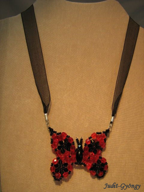 Piros-fekete pillangós nyaklánc