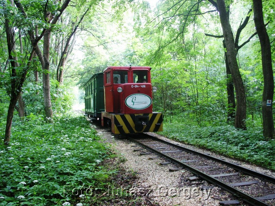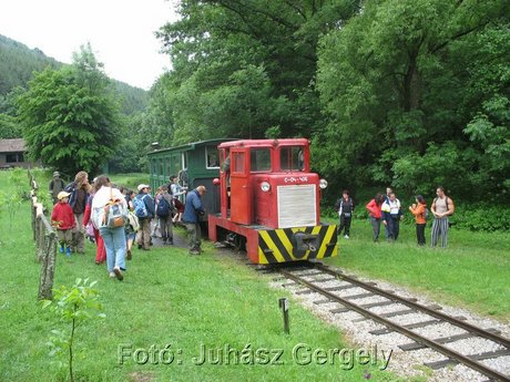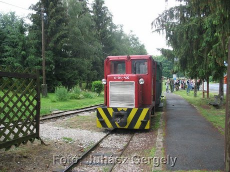 mondom, hogy sokan voltak rajta, de majdnem minden ülőhely foglalt volt. Ez már a kisvasút felsőtárkányi végállomása. A vontatójármű a C-04-406 pályaszámú C50-es