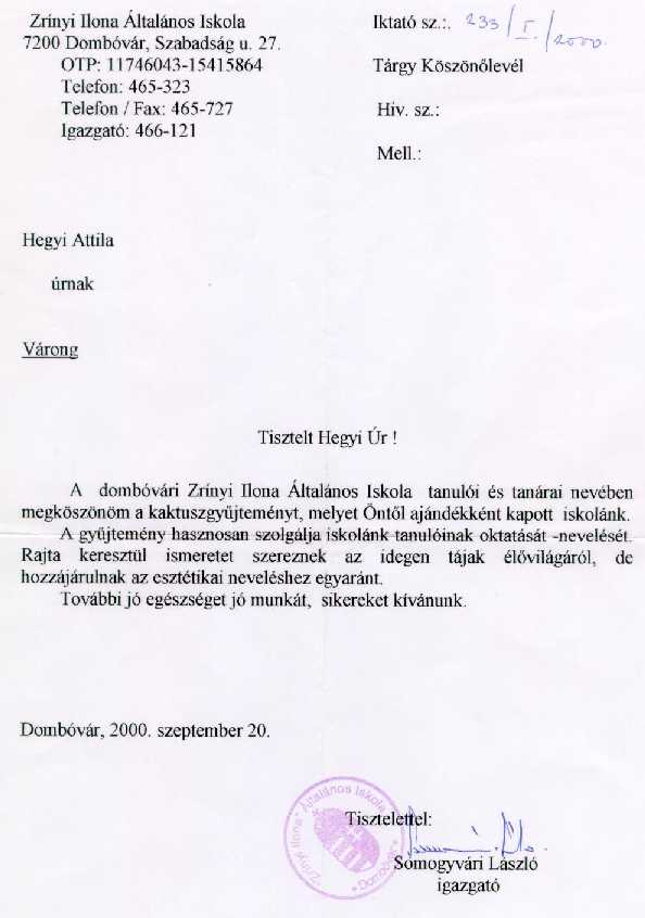 Először is: Aki közületek, Barátaim, 80 Ft-os bélyeget küld levelében, mint kezdő gyűjtő, önmagáról és a kaktuszokhoz vonzódásáról meggyőzően ír, ingyen (és bérmentve) legalább 5-6 db, a kereskedelemben nem elterjedt, de egyszerűbb kaktuszfaj hajtásait kaphatja dobozolva.