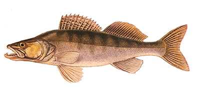 Linné - Zander Nyújtott, enyhén lapított testû. Szája csúcsba nyíló, a szájszögletet eléri vagy hátrább végzõdik a szemgolyó hátsó vonalánál. Szájában apró és nagy ("eb") fogak változnak. A kopoltyúfedõ pikkelytelen. Igazi sporthal. A süllõzés - "ha jár a hal" - horgászatunk legérdekesebb része. Fogható úszóval, fenekezõ, mártogató és pergetõ horgászmódszerekkel. Fajlagos tilalmi ideje: március 1-tõl április 30-ig tart. A legkisebb kifogható példány 40 cm. Mennyiségi korlátozás: 3 fogható naponta. |
