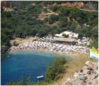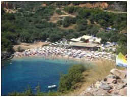 Másnap megcéloztuk a házigazdánk által csodálatosnak tartott strandok egyikét, Karavostasit. Kb. 25 km-re volt. A térkép alapján láttuk, hogy 60 km-en belül legalább 15-20 öböl található környezetünkben. Aki nem járt még görögben annak hiába magyarázom, de a világutazóknak talán mondanak valamit a következők. Az öblök megközelítése szerpentineken keresztül valósul meg. A pljázsok meredek sziklafalak között helyezkednek el, itt többnyire apró kavicsosak, 5-10 méter után mélyülők. A víz szemet gyönyörködtetően mélykék színű, Sartihoz hasonlítható.