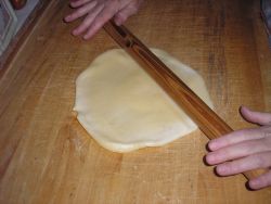 vagy meleg vízben. Ezután 2-3 mm vékonyra kinyújtjuk, mint a tésztát, cikkekre