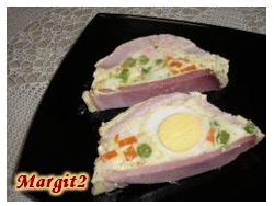 tálra ültetjük egymás mellé. Az egészet leöntjük tejföllel higított majonézzel,