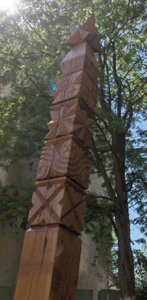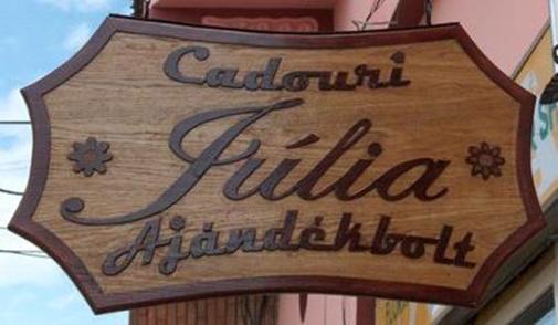 Kopjafák, faragott cégtáblák |
