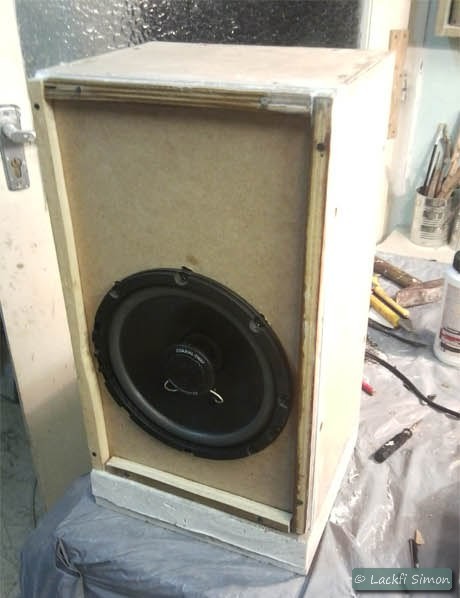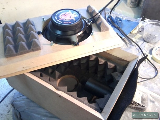 A tapasztalat: egy jól megépített hangdoboz a nagyon olcsó autóhangszórót is képes tűrhető hangúvá alakítani. A dobozt nagyon masszívnak szereltük össze, a MDF lap vastagabb az elvileg szükségesnél és a hangelnyelő szivacs sem a legalja. Persze nem egy stúdiómonitor...