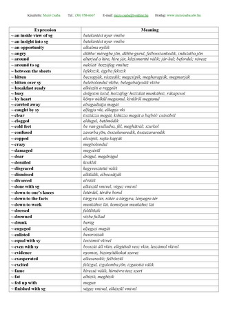 Expressions with DO / GET / HAVE / MAKE / TAKE szerkezetek, kifejezések magyar jelentésükkel.