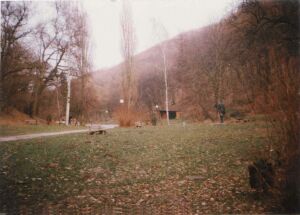 nagyanyámmal. Alatta volt a motyónk, faágon a kosztos táska, hogy ne menjenek bele a