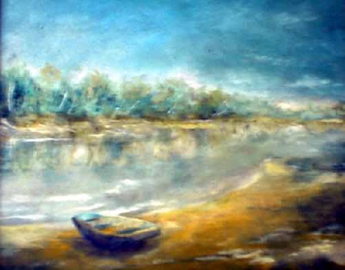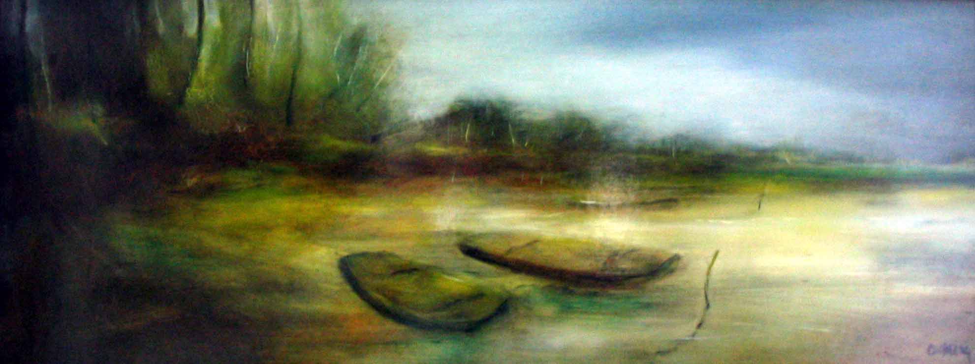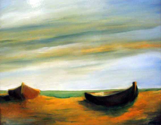 Lonely boat (oil/wallboard), private property 1998