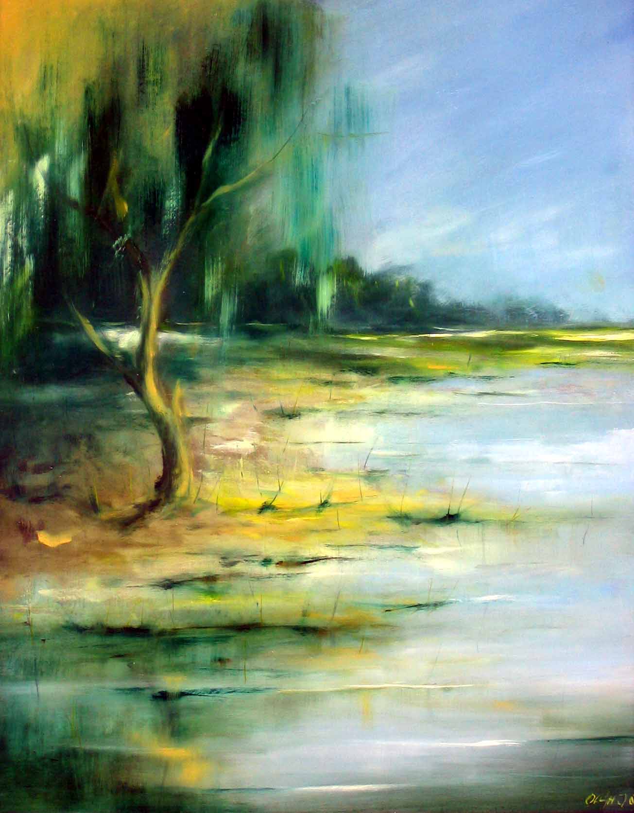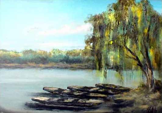 Sallow on the bank of the lake (oil/wallboard), private property 2003