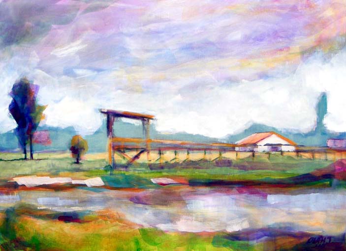 Pier over the Tisza river coast (akril/canvas), private property 2009